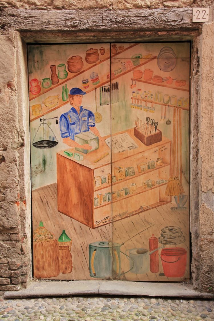 Ecco una bella porta dipinta che ben rappresenta l’attività al suo interno, in Liguria abbiamo molti borghi che hanno porte dipinte, di alcuni ne parlerò in futuro, ma come vedete anche qui in Piemonte troviamo queste belle sorprese…
