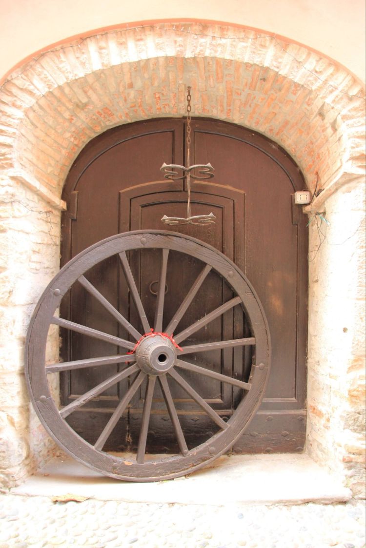 Davanti ad un portone storico ecco la ruota di un carro, a testimoniare il suo lontano passato, quando le macchine erano ancora lontane e ci si spostava come si poteva…