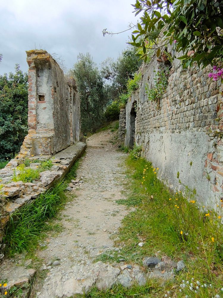 Dopo aver visto questa curiosa chiesetta proseguiamo speditamente il cammino, passando sopra ad un piccolo rio dove un albero vestito a primavera crea un piccolo affresco di poesia in un punto altrimenti scialbo…