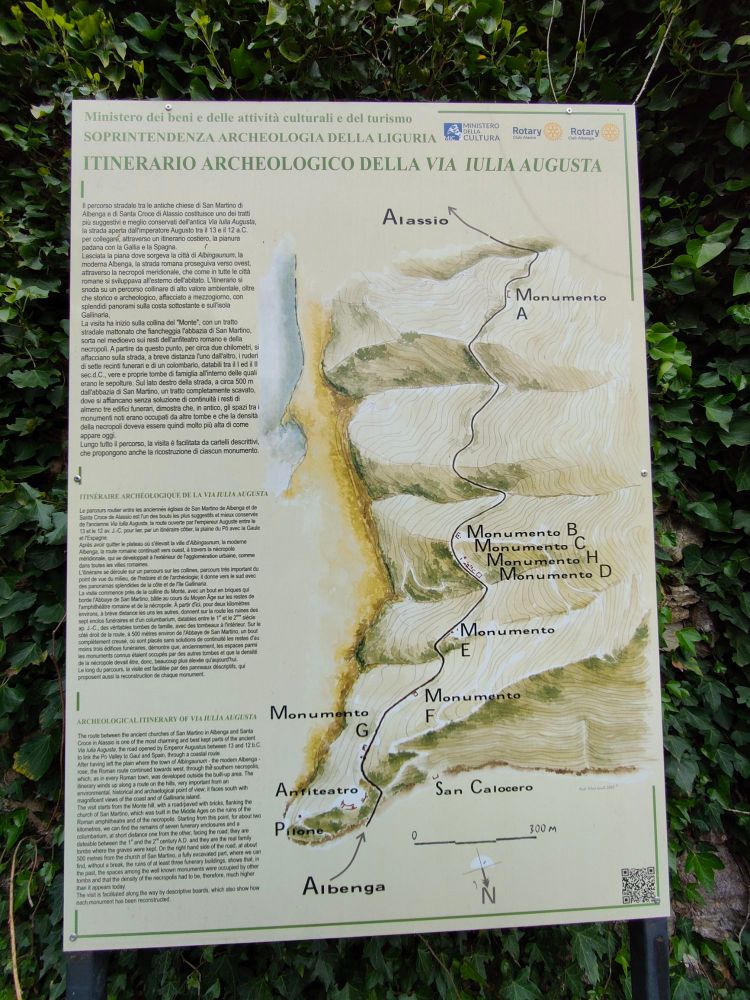 Proseguiamo il cammino sulla Via Augusta, andando a scoprire altri reperti storici molto importanti. Il cartello che vi faccio leggere qui sotto vi racconta per sintesi lo sviluppo di questo tratto di Via Augusta, con i vari punti d’interesse che stiamo visitando lungo il cammino….