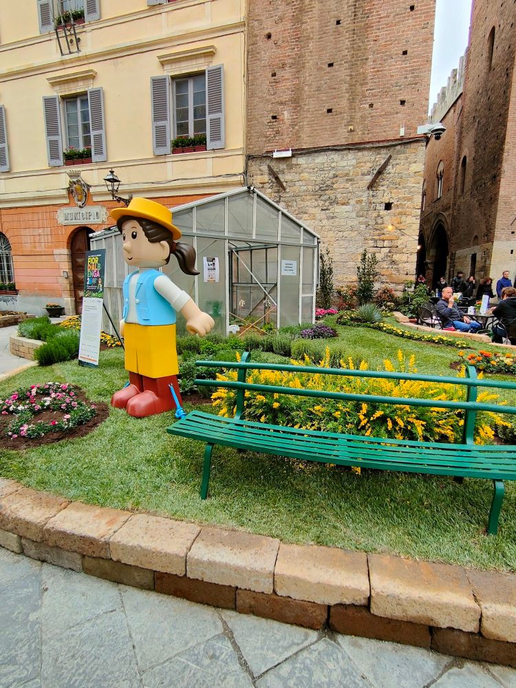 Questa visione grandangolare mette in evidenza sia la bellissima aiuola, che alcune torri del centro storico…