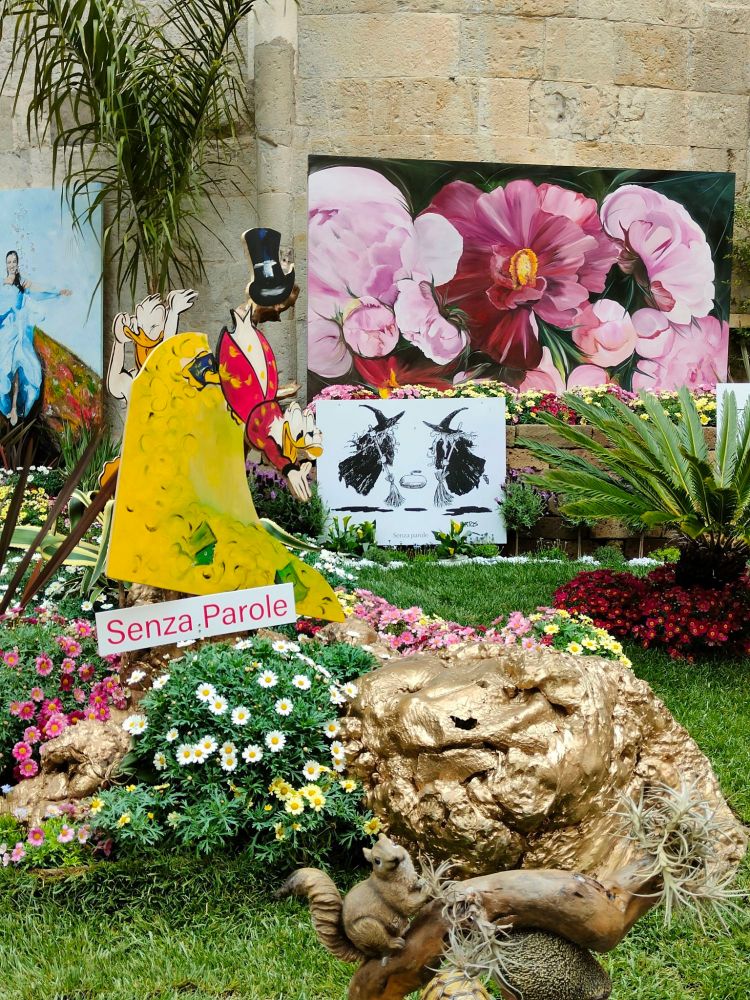 Strade di parole, strade di fiori, ecco due mondi che sembrano integrarsi fino a fondersi a vicenda in questa aiuola…